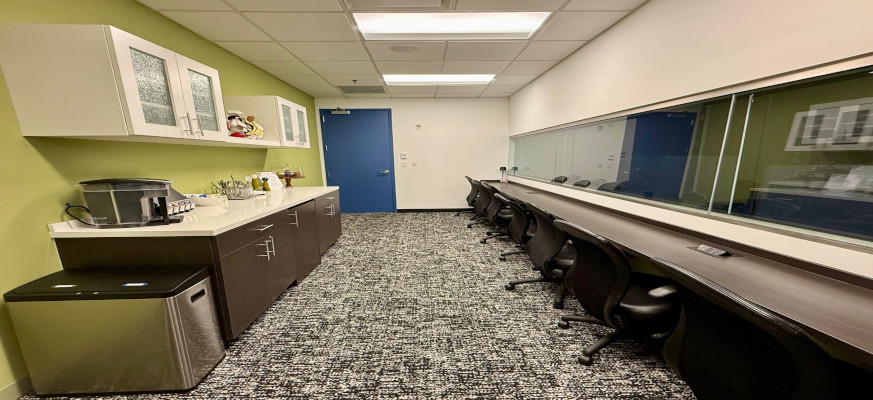 The ultimate flex space, our auditorium is designed to host whatever products or environments you need for a successful study. We can drive automobiles and vehicles right in from the parking lot, set up a mock courtroom, create a realistic restaurant, bar or retail store. The space can also be broken into smaller vignettes for comfortable conversations and collaboration. Our auditorium’s flexibility is remarkable.